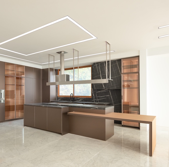 The ground floor provides a gym, sauna, steam room and bar lounge in addition to its Ernestomeda wine room and theatre. One may take the elevator to the main floor which includes an office, maids room, service kitchen and entertainment size living and dining areas among other exquisite spaces. The upper floor offers four ensuite bedrooms and a family room, highlighting vaulted ceilings and stunning interiors. Outdoor areas involve an infinity edge salt water pool, spa, outdoor kitchen, lounge, fireplace and lookout amongst other private amenities.